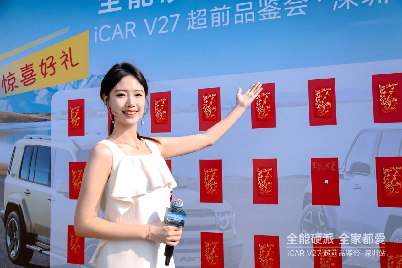 在感受产品魅力与现场欢愉的同时,iCAR也为到场嘉宾准备了实实在在的惊喜。为回馈各位的关注与认可,本次V27超前品鉴会特别设置了盲订专属红包墙——凡现场参与盲订的客户,均可参与红包墙抽奖,每一份红包都承载着品牌的满满诚意。更值得一提的是,红包墙礼品可与V27盲订三重福利(零购置税、抢先试驾、专属交车礼)叠加享受,多重权益同时解锁,让首批用户真正感受到“下手越早,惊喜越多”的尊崇体验。现场销售团队也随时待命,为有意进一步了解的嘉宾详细解读配置与购车政策。