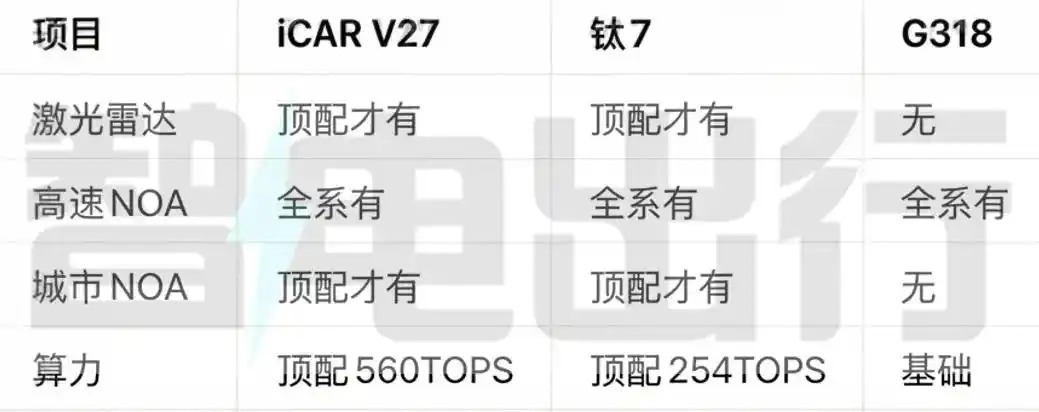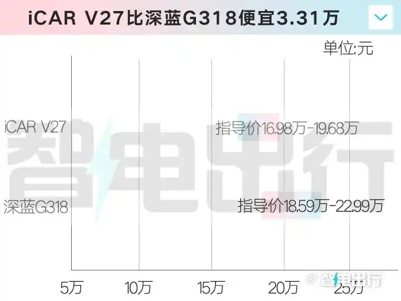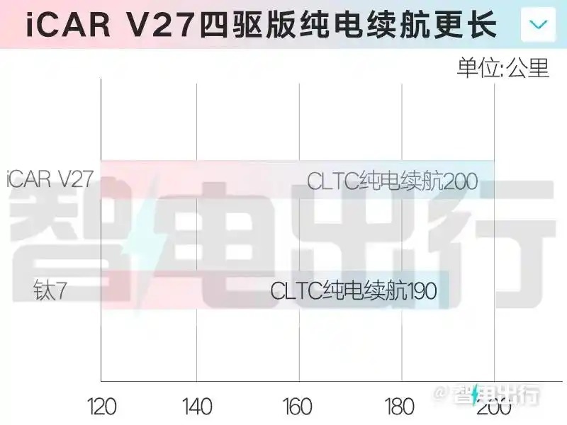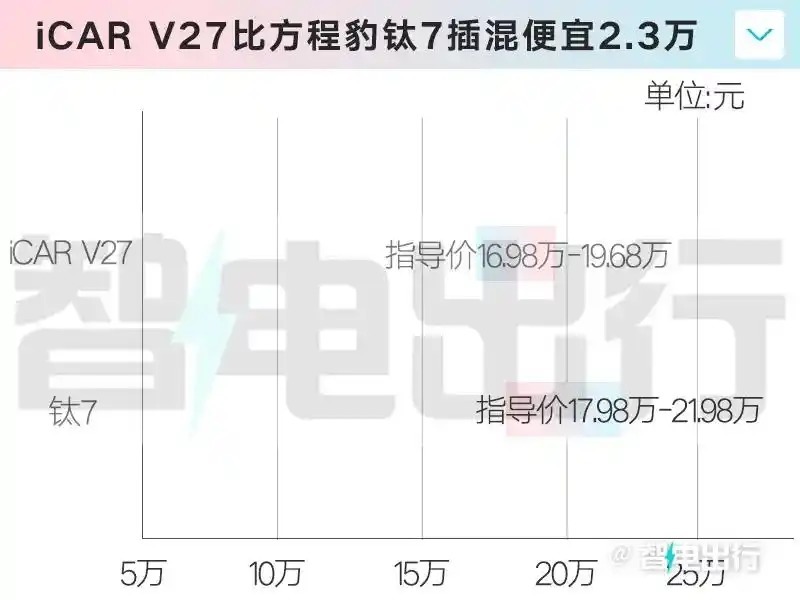 iCAR V27的指导价比方程豹钛7和深蓝G318都便宜,如果再算上限时优惠政策,其落地价要比这两款车低不少。不过也要看到,V27的动力性能和对手存在差距。