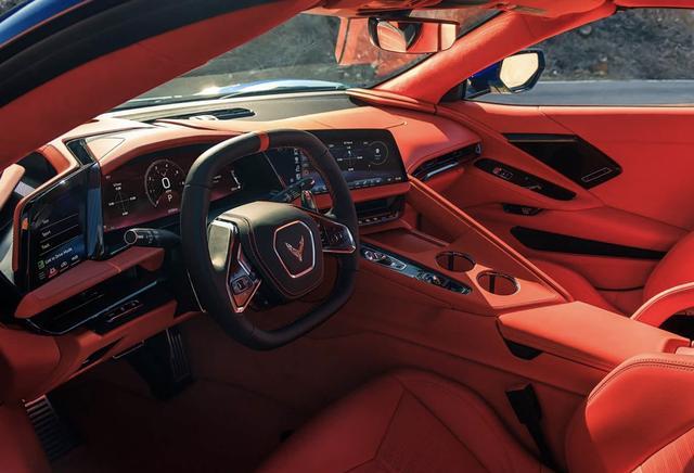 车身侧面线条流畅硬朗,配备10辐锻造铝轮毂,提供多种漆面涂装可选,轮毂内红色刹车卡钳十分醒目,致敬经典车型的同时强化运动气场;宽体翼子板搭配隐藏式车门把手,降低风阻的同时提升视觉张力,车门采用轻量化材质打造,兼顾性能与实用性。车尾配备升级后的后扰流唇,可选装中置四出排气布局,这也是第八代科尔维特推杆V8车型首次提供该配置,搭配竖向LED尾灯,整体造型极具攻击性,完美诠释性能跑车的酷炫气质。