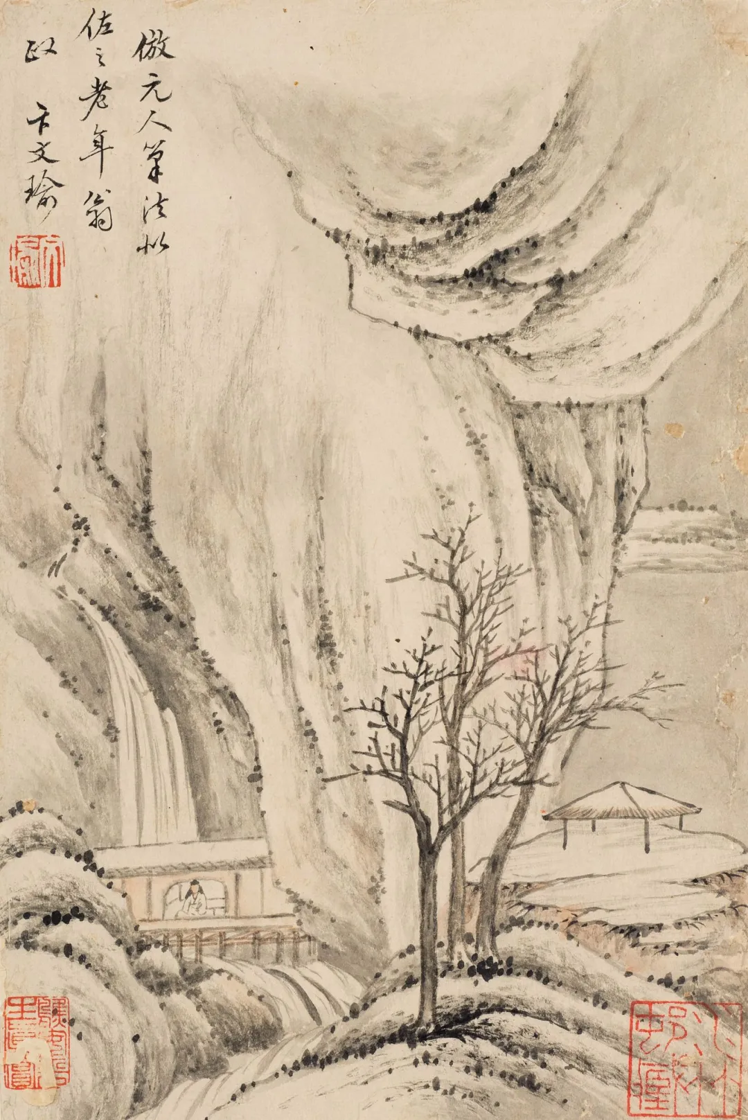 卞文瑜这组《仿元人山水册》,十二开小画,像十二扇通往元朝的任意门,一脚踏进去,满眼都是诗意山水。