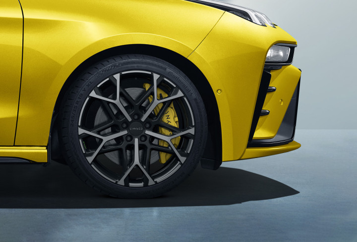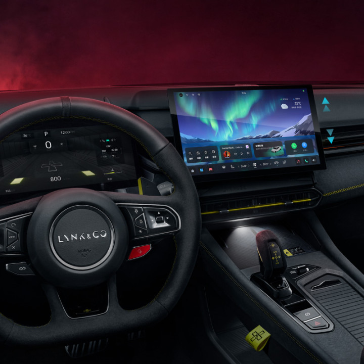 内饰设计围绕驾驶仪式感与舒适性展开。中控与门板采用Alcantara材质覆盖,触感细腻且摩擦力适中,双手接触时能感受到不同于普通材质的质感;荧光黄饰条的点缀,既增强了运动氛围,又不会分散驾驶注意力。桶形运动座椅包裹性出色,腰部与腿部支撑到位,激烈驾驶时能牢牢固定身体,让驾驶者更专注于操控;座椅材质与缝线工艺也凸显精致感,每次坐入车内都能感受到专属的驾驶氛围。智能配置方面,双屏联动设计配合高通骁龙8155芯片,操作流畅无延迟,显示界面简洁清晰,关键行车信息一目了然;AR-HUD增强现实抬头显示将导航信息投射于前方道路,驾驶者无需低头查看屏幕,既能保持对路况的专注,又能通过信息同步增强与车辆的互动感。
